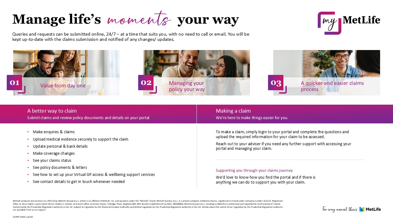 At MetLife, we know how important your support is at the point of claim. Customers rely on your expertise during these moments, and that’s why our focus for myMetLife is to make the claims process more efficient for them; while ensuring you remain central to their experience.